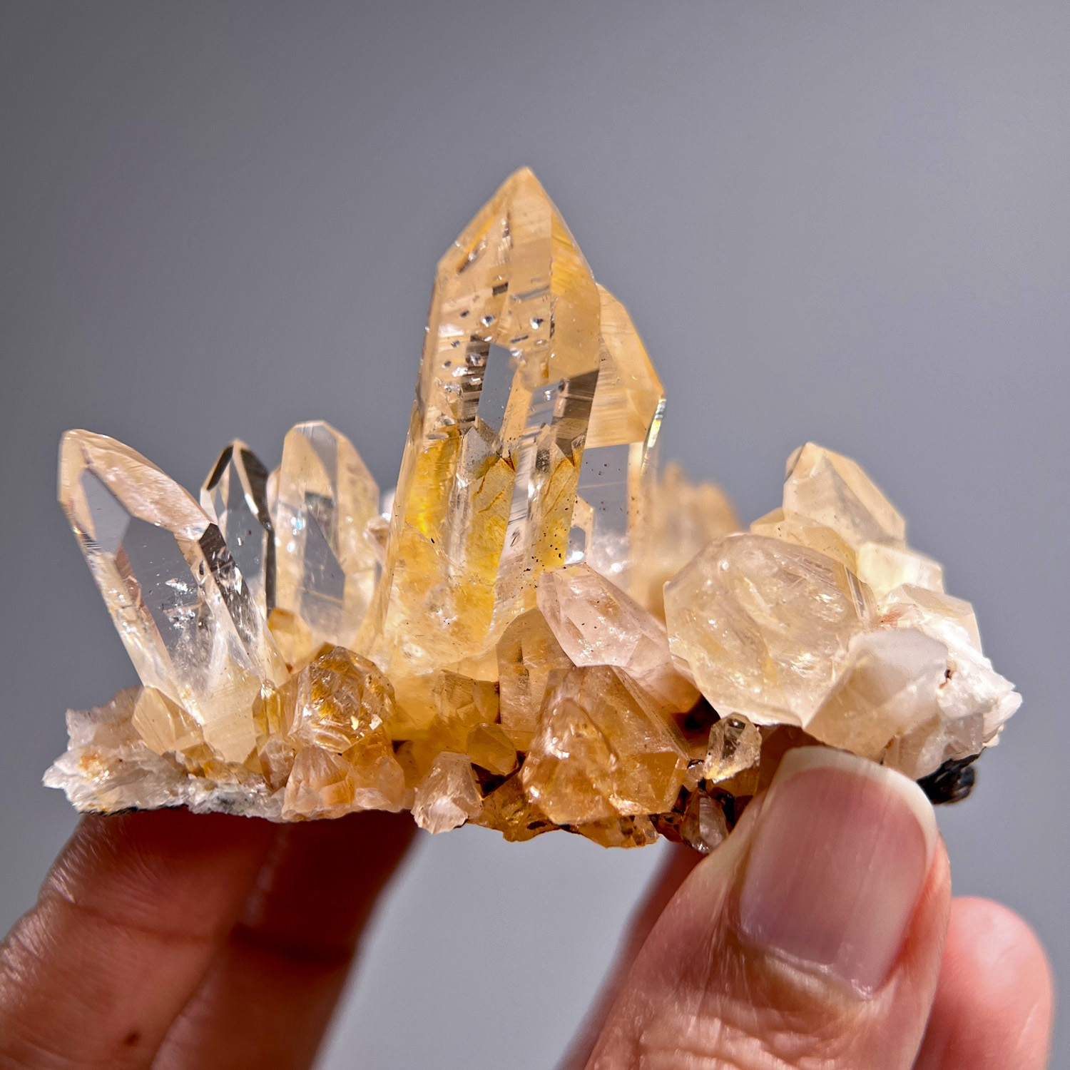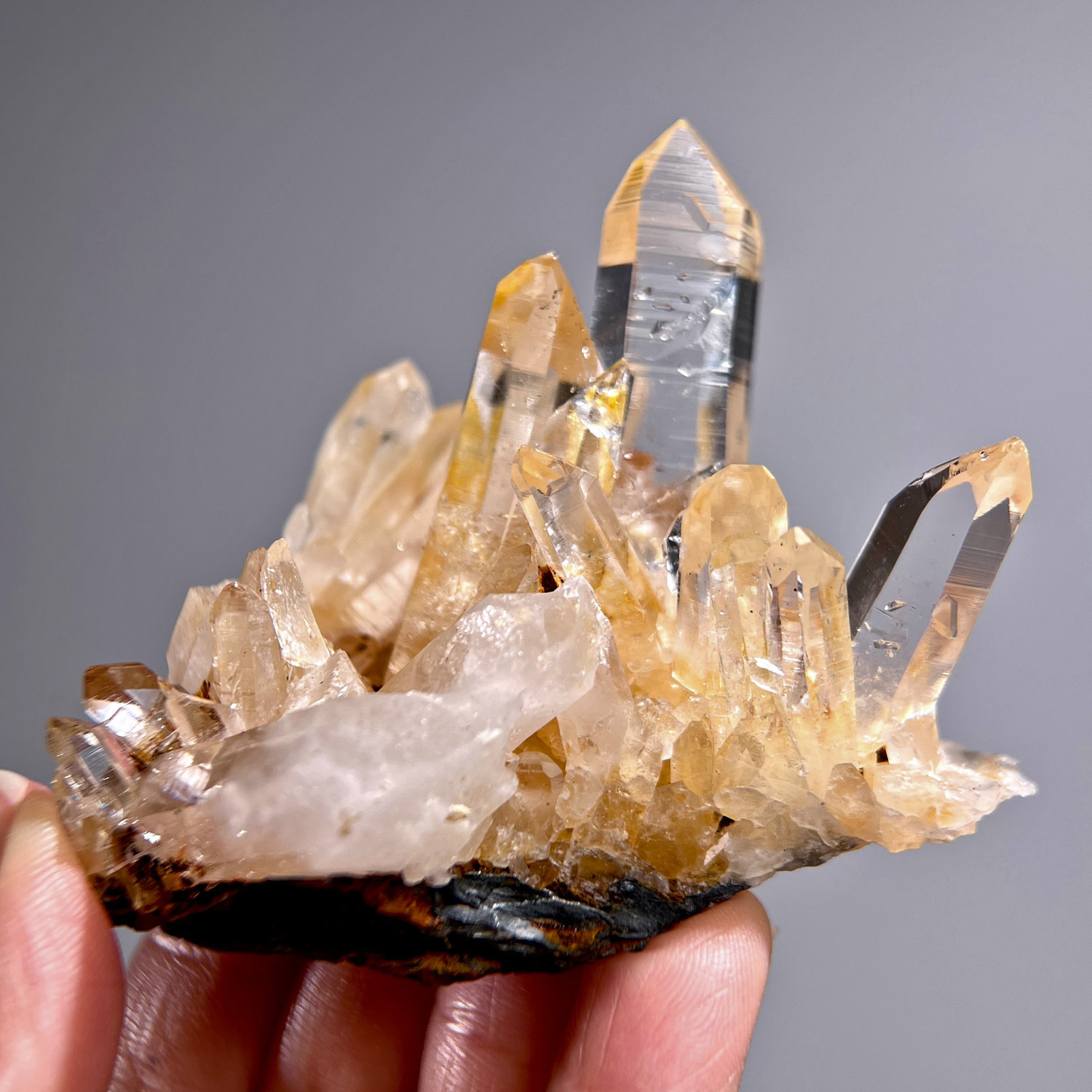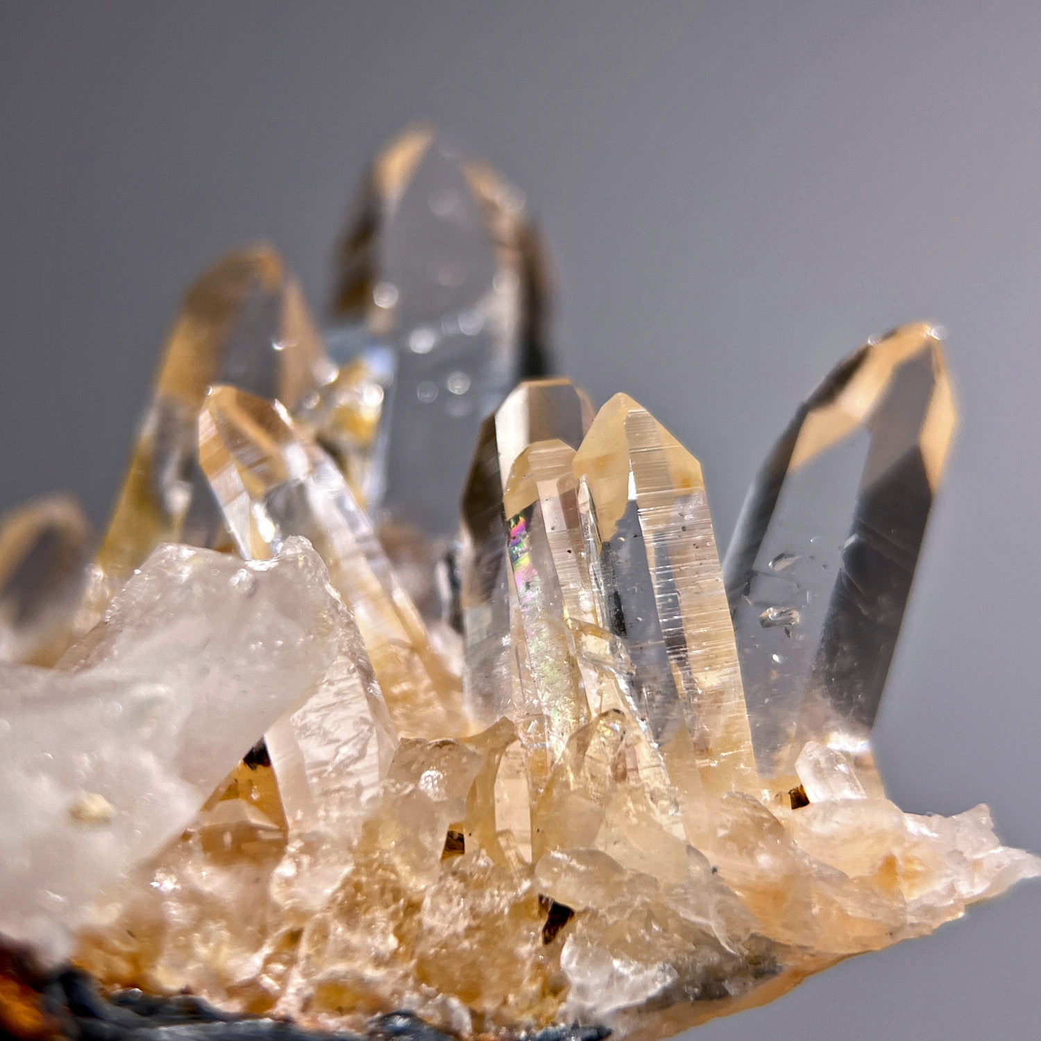 近年從哥倫比亞的Peñas Blancas(市場簡稱PB礦區),也有開始產出一些透明石英,成為列木里亞水晶的另一個主要產地,它並不是固定一個地點,是非常多的礦洞礦脈分布在那一區。Peñas Blancas其實一直以來都是祖母綠的礦區,也被稱為 Vásquez–Yacopí 礦區,只是聽說這幾年透明石英這一類的淨透白水晶開始受歡迎,所以開始在這些礦洞開挖白水晶,其中有一些礦洞則是出產黃金色系的列木里亞水晶,主要是因為鐵一類的氧化物共生,所以有著不同程度的金色,偶見金紅色,有些是局部的黃金色,有些是整支透著淡淡的金黃,也有一些是局部的陽光感的淡淡仙金色或是局部的褐金色…等等。