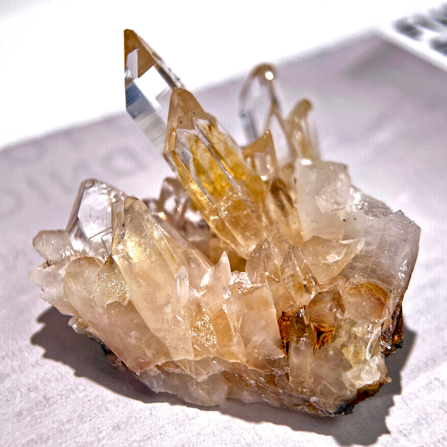黃金列木里亞水晶分享著Peñas Blancas礦區經典的列木里亞水晶的外觀與能量特質,它同時擁有PB礦區水晶極致的淨透度與潤澤感,包含條碼一般立體的生長紋,更具有著因黃金色系的共生物而衍生出的獨有能量與特質。在幾次連結中,我感覺到它們深刻的與我們的光碼有著關係,每次連結帶來的資訊,首先都是這個部分,雖然我也不是很理解光碼背後的真實意涵,但以人腦揣測,無非是我們自身的一些與光有關的code吧。