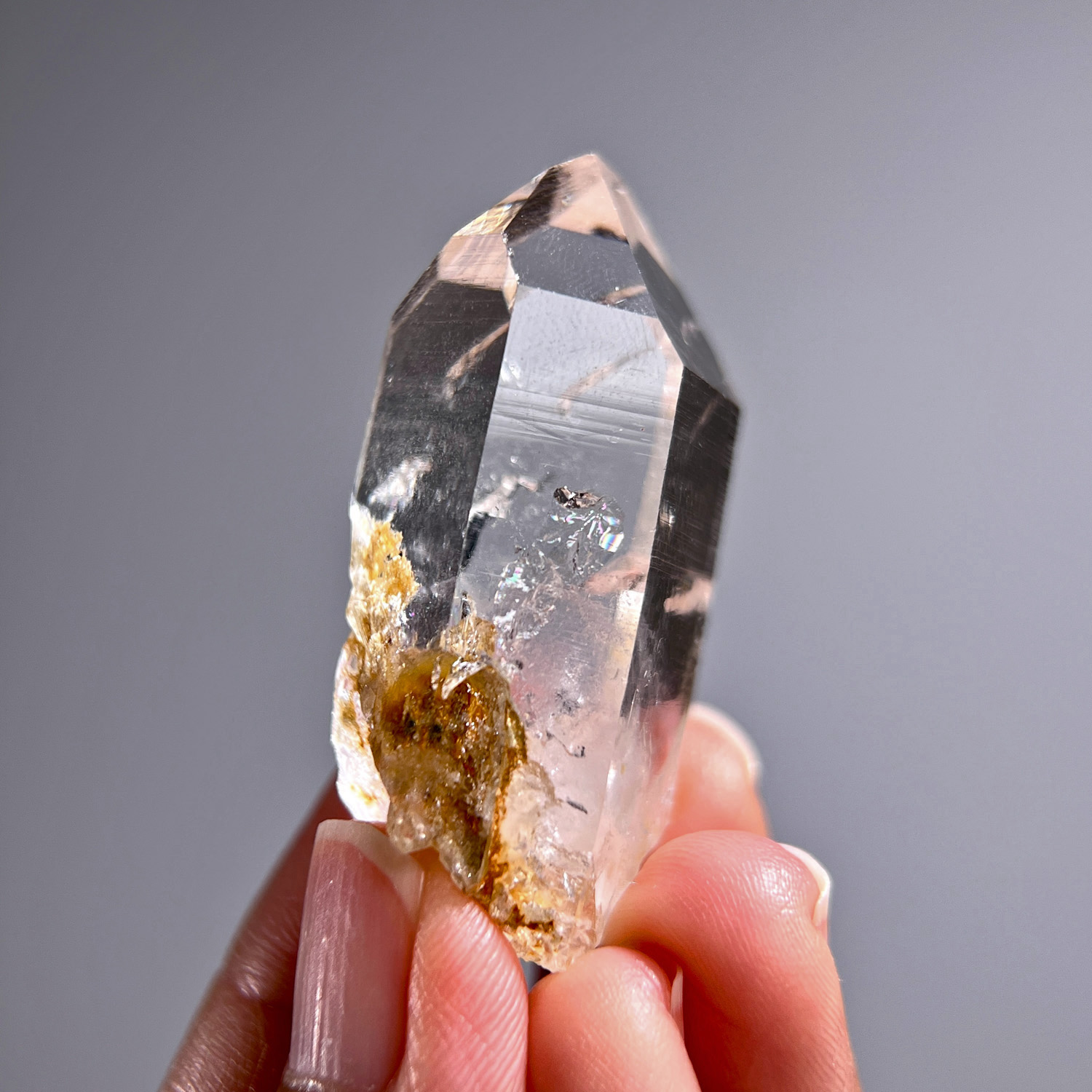 這支是稀少的八邊形接地水晶,尖端的六稜面有一個稜面是八邊形,根據水晶特徵資料的記載,這是一種接地水晶(Grounding Crystal),常見英文名稱包括"Eight-Sided Face"或"Grounding Crystal Face",可以幫助我們扎根,能讓我們沉澱下來,溫柔的看向內心。通常八邊形都是相當大的面向,它們曾提示我這是一個與地球連結的通道,同時能將所有身心能量系統中不符合我們當下益處的部分,順道的帶到地底去釋放,也幫助我們與地球的關係有個緊密的連結,讓我們能更落實於地球的去實行自己的靈感與想法,這也是「接地紮根」的重要意義,對於常常覺得思緒容易飄散或受影響的人來說是很有幫助的,我想這種讓自身身心更沉澱穩定的力量是來自於地球的共振,因為八邊形接地水晶與地球之間有特別連結的管道。同時,稜面上也具有非常多的三角形資料庫記號,想更了解資料庫水晶的特質,歡迎點擊連結觀看詳細介紹:資料庫水晶。