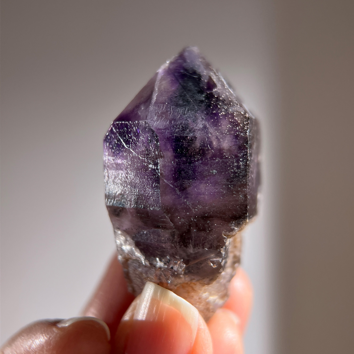 通常這種幻影紫的水晶都不大,大約2cm-7cm,超過這個長度的更稀有,即使5/6cm一支,頂級精品的價格都是數萬台幣起跳的,當然也有一些小精品,不到頂級程度,近萬也有,其餘紫色不濃郁的,只要晶體透亮,有一抹紫,一小支也是有上千到幾千範圍的,這是目前觀察到的市場情況。(以上以台幣為幣值)
