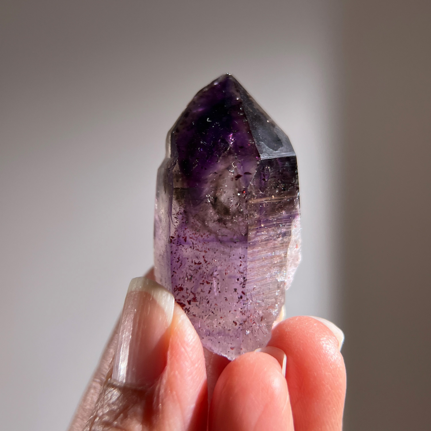 通常這種幻影紫的水晶都不大,大約2cm-7cm,超過這個長度的更稀有,即使5/6cm一支,頂級精品的價格都是數萬台幣起跳的,當然也有一些小精品,不到頂級程度,近萬也有,其餘紫色不濃郁的,只要晶體透亮,有一抹紫,一小支也是有上千到幾千範圍的,這是目前觀察到的市場情況。(以上以台幣為幣值)