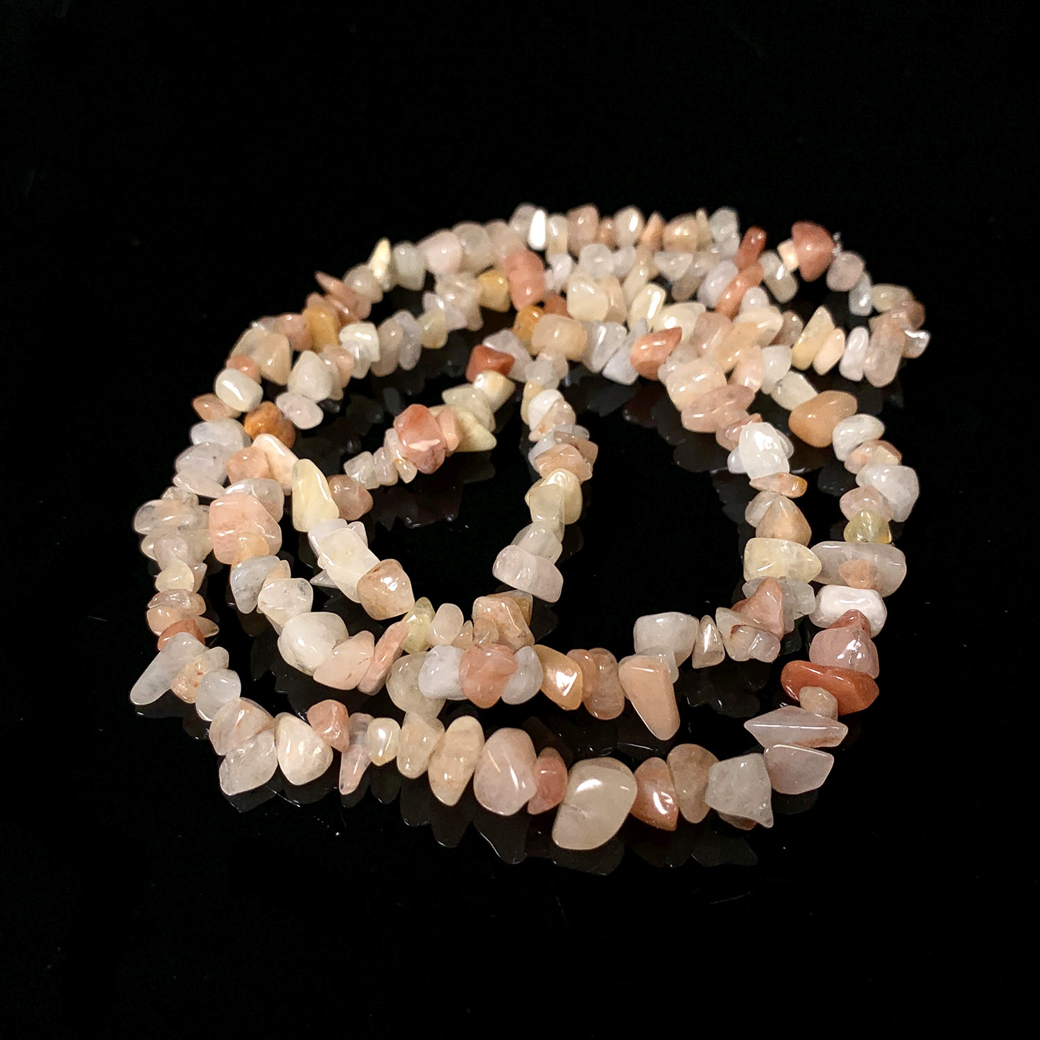 [購前詳閱]本款項鍊由小塊原石隨形打磨拋光,透過無彈性的透明線串成,若日後斷線可考慮使用傳統串珠的方式進行,或是將碎石盛裝於容器中,作為為其他礦石淨化充能使用,或是可用於水晶網格排列等等,可發揮自己的創意 | PS. 碎石珠皆由天然礦石打磨成形,因此外觀仍有天然礦缺,請知悉
