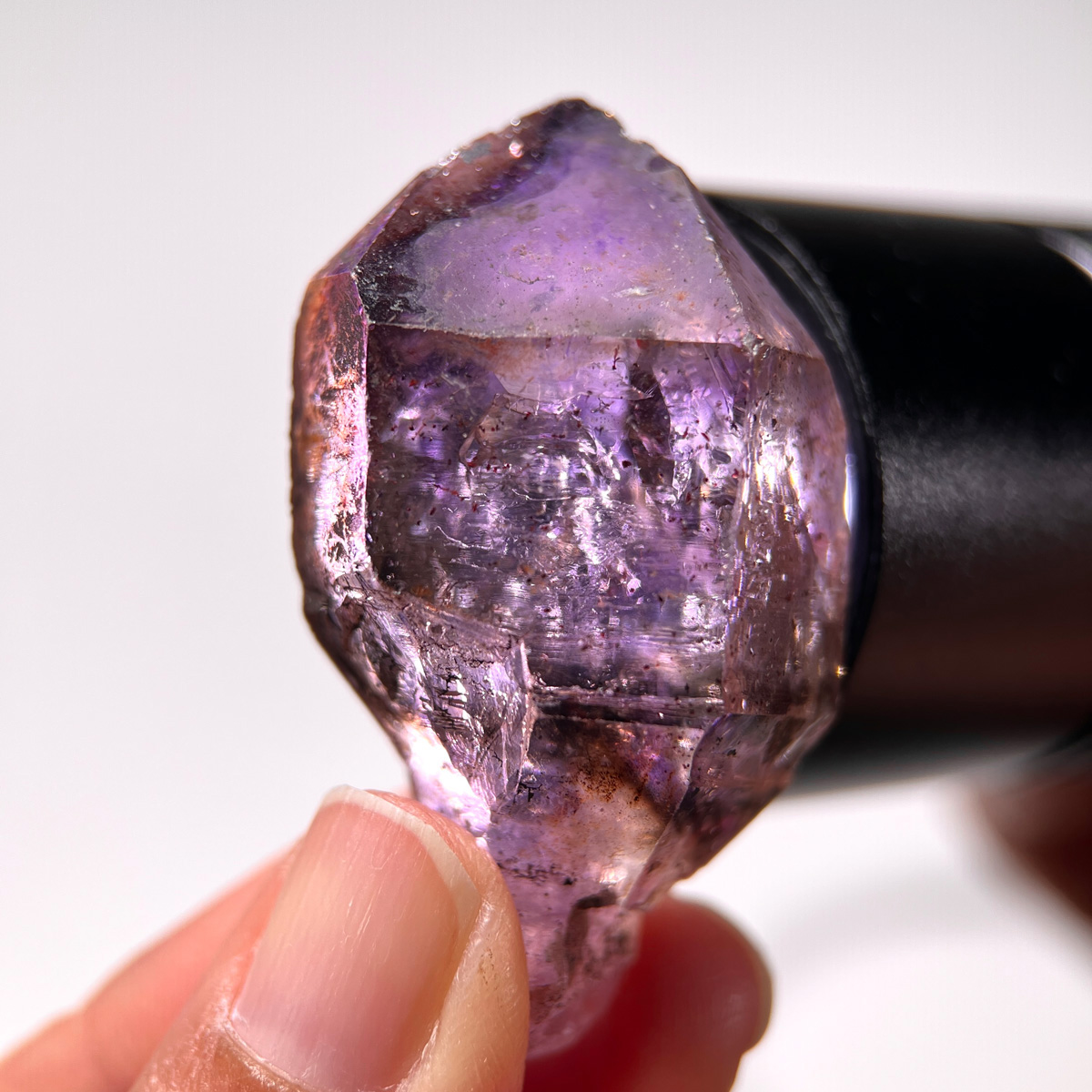 在使用手電筒或光源照射內部,可以看見散射出來的紫色光芒和清晰的內包裹,我建議你一邊轉動它們,一邊看著它們,因為那些散射出來的光芒具有很直接的能量和療癒性,也刺激了眼區的感受。