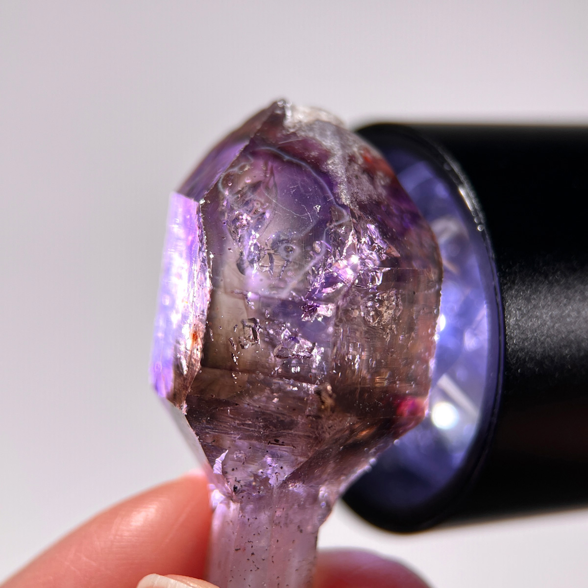 在使用手電筒或光源照射內部,可以看見散射出來的紫色光芒和清晰的內包裹,我建議你一邊轉動它們,一邊看著它們,因為那些散射出來的光芒具有很直接的能量和療癒性,也刺激了眼區的感受。