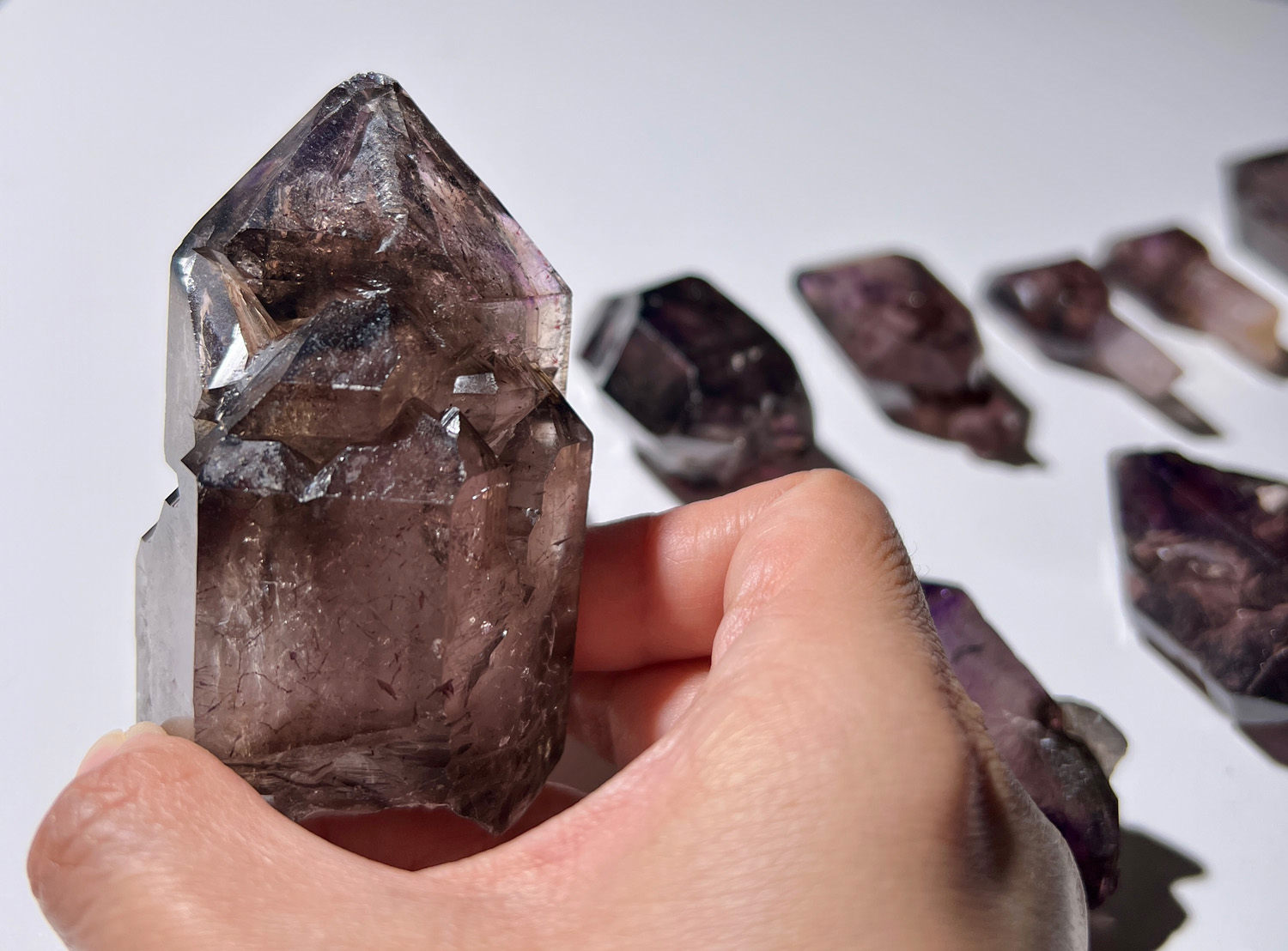 有些超七紫水晶並沒有這些完整的內包裹物, Melody和Judy Hall的著作《The Crystal Bible》中,都有提到,即使有些超七肉眼看不見所有內包裹礦物,但他們認為仍會攜帶著整體的能量。我可能會說,一顆產於同一個產地的超七紫水晶,即使沒有豐富的內包裹,但仍具有超七族群的整體能量與特質,但個體化的呈現有其原因,也會有個別的特徵,比如消失或更少的內包裹可能以能量的特質存在於非物質的狀態中,以更隱晦的方式收斂它的能量。