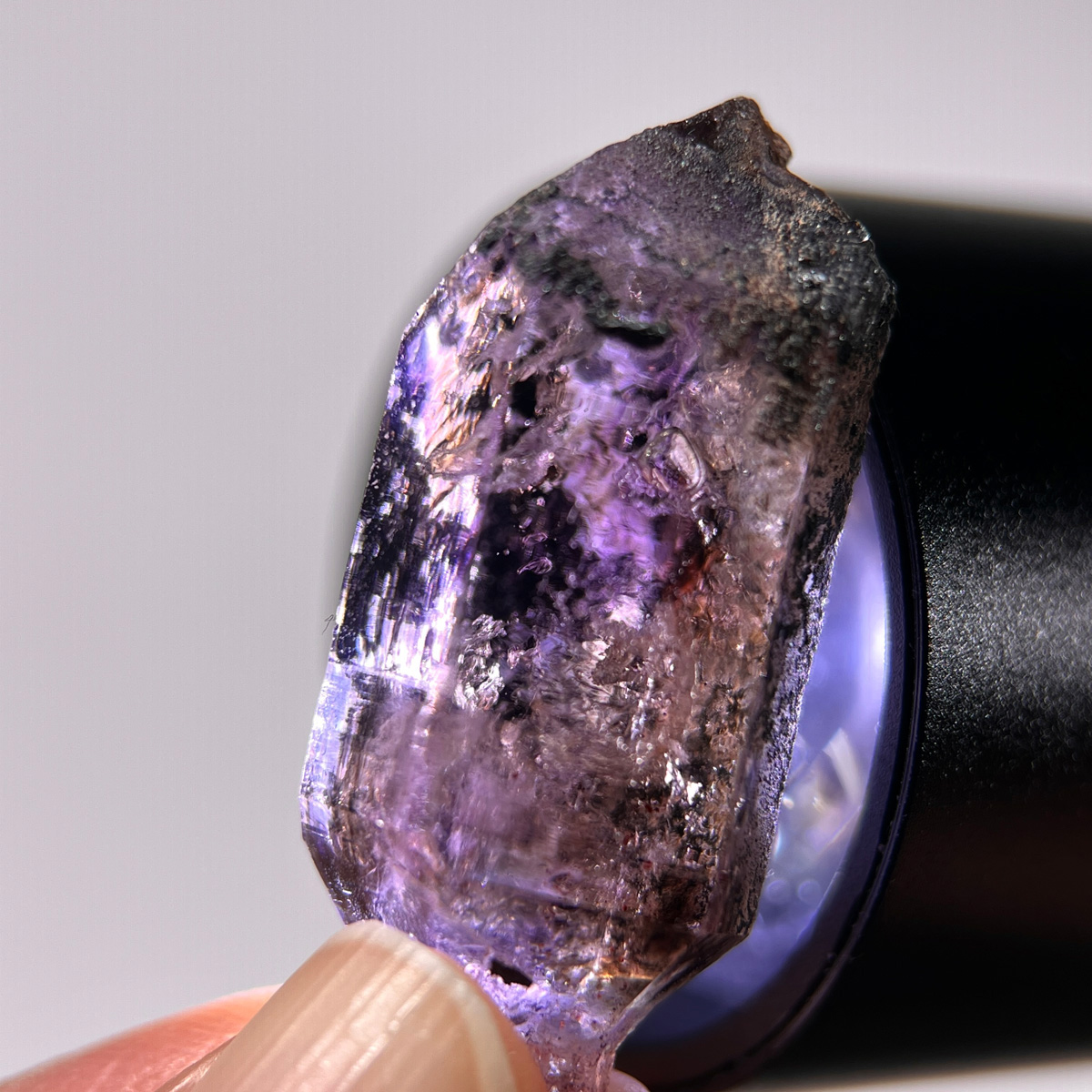 在使用手電筒或光源照射內部,可以看見散射出來的紫色光芒和清晰的內包裹,我建議你一邊轉動它們,一邊看著它們,因為那些散射出來的光芒具有很直接的能量和療癒性,也刺激了眼區的感受。
